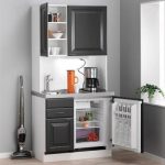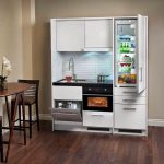 Dưới đây là một số mẫu ví dụ về tủ bếp khá hiện đại và cao cấp, với hệ thống tủ thiết kế âm tường trên chiều dài lớn, các ngăn tủ rộng với nhiều thiết bị sang trọng. Chỉ một vài mẹo thiết kế đơn giản đánh lừa mắt nhìn có thể tạo cảm giác đồng bộ làm không gian bếp gọn gàng và như rộng ra.