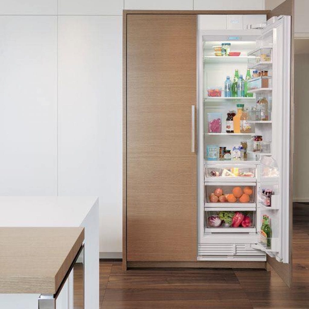 Dưới đây là một số mẫu ví dụ về tủ bếp khá hiện đại và cao cấp, với hệ thống tủ thiết kế âm tường trên chiều dài lớn, các ngăn tủ rộng với nhiều thiết bị sang trọng. Chỉ một vài mẹo thiết kế đơn giản đánh lừa mắt nhìn có thể tạo cảm giác đồng bộ làm không gian bếp gọn gàng và như rộng ra.